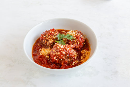 Our famous Rosie's Meatballs are now available for online purchase and shipping! Receive 6 fresh, house-made meatballs in our delectable marinara sauce. Meatballs are made with locally-sourced premium beef and pork. Ingredients: Beef, pork, garlic, egg, cheese breadcrumb, parsley, salt, pepper.